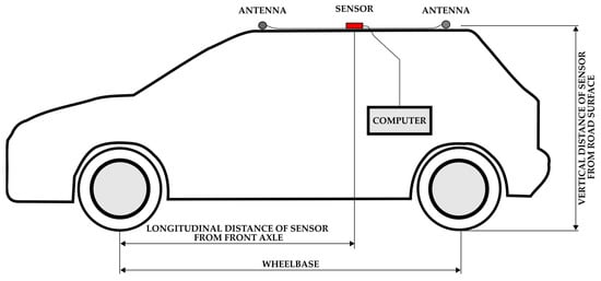 Ten testing scenarios with eight different vehicles were applied for tests. The examples of field-test subjects (vehicles V7 and V10) are given in Figure 5. The sensor was installed in vehicle’s longitudinal axis on roof of passenger vehicles and in vehicle’s longitudinal axis under the roof of van vehicles with the antennas on roof. The highest lateral accelerations of the vehicle occur always when the sensor is allocated on the highest point in view of additional disturbances because of air-triggered movements and other external conditions. If the sensor is positioned lower than measured lateral accelerations are lower. The aim of the tests is to measure the highest possible results we can expect during regular driving.