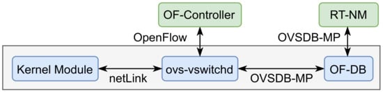 The interface between the RT-NM and the OF-DB is carried out using the OVSDB management protocol (OVSDB-MP) [], as sketched in Figure 4.