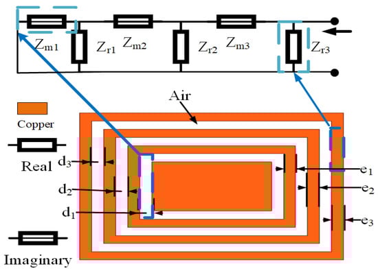 where  and  is the dielectric constant of the two materials.  (i = 1, 2, 3) is the coupling distance parameter of the coil, whose corresponding reactance is  (i = 1, 2, 3). The effect of the coil area on the capacitance is ignored [].