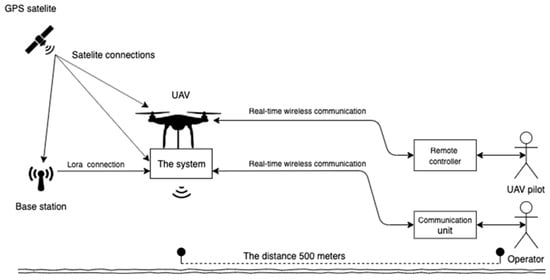 The desired range for communication is up to 500 m, allowing for coverage over a significant area. Furthermore, the distance between the “Base station” and the “On-board computer” can extend up to 40 km thanks to the utilization of low-frequency communication facilitated by Lora technology.