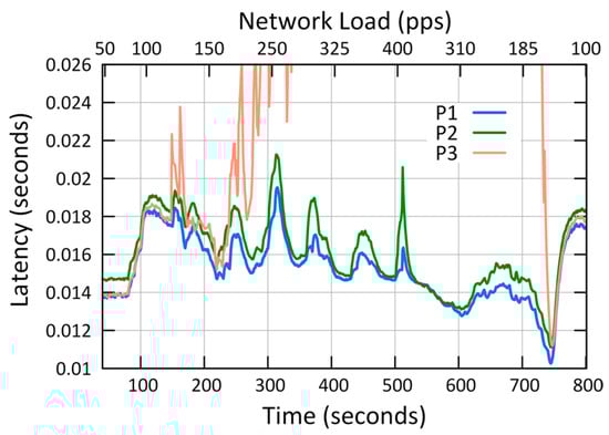 For this tuning, a scenario comprising an IoMT with 20 sensor nodes and a sink node was used. The nodes operate on the same wireless channel and are deployed in such a way that there is full connectivity between them (the overhearing effect). First, an IEEE 802.15.4 wireless channel was considered with a maximum transmission capacity of 250 kbps [] and a packet size of 80 bytes (value proposed by [] as the value that best balances the latency and throughput). Then, according to (6), the maximum network load is reached with 390.62 packets per second (pps).
