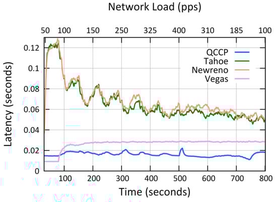 - Brakmo, L.S.; O’Malley, S.W.; Peterson, L.L. TCP Vegas: New Techniques for Congestion Detection and Avoidance. In Proceedings of the Conference on Communications Architectures, Protocols and Applications, London, UK, 31 August–2 September 1994; ACM: New York, NY, USA, 1994; Volume 24, pp. 24–35. [Google Scholar]