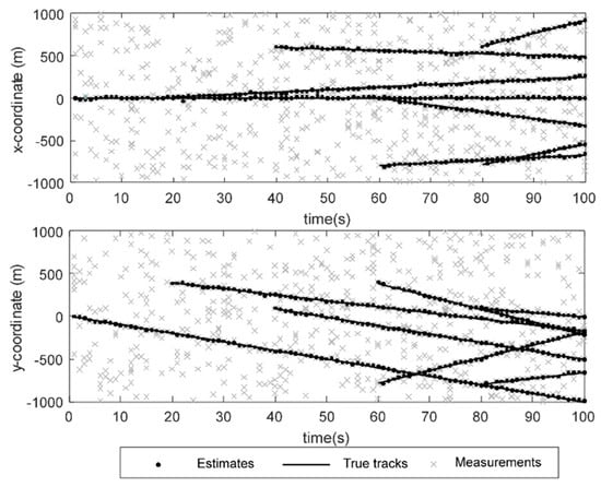 - Vo, B.T.; Vo, B.N.; Cantoni, A. The cardinality balanced multi-target multi-Bernoulli filter and its implementations. IEEE Trans. Signal Process. 2009, 57, 409–423. [Google Scholar]