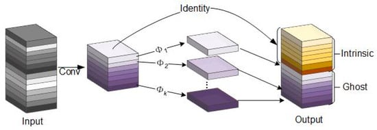 - Han, K.; Wang, Y.; Tian, Q.; Guo, J.; Xu, C.; Xu, C. GhostNet: More Features from Cheap Operations. In Proceedings of the 2020 IEEE/CVF Conference on Computer Vision and Pattern Recognition (CVPR), Seattle, WA, USA, 13–19 June 2020; IEEE: Piscataway, NJ, USA, 2020; pp. 1577–1586. [Google Scholar]