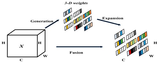 where , , and correspondingly signify the location of the target neuron, the index of the spatial dimension, and the remaining neurons within the input tensor on a solitary channel. signifies the total count of neurons in a specific channel, while denotes the measure of neuronal significance. The precise formulations for the weight and bias of the energy function are provided by Equations (3) and (4):