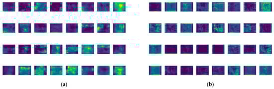 To thoroughly confirm the improvement achieved by the SimAm mechanism, we conducted Grad-CAM visualizations for the model before and after its integration. The results notably indicate that after the incorporation of the attention mechanism, the detection head becomes more focused on critical regions closely linked to distracted driving behavior. Consequently, the model’s capability to represent distracted driving behavior significantly improved, providing evidence of the effectiveness of the SimAm mechanism. Figure 15 is a feature-map visualization of the enhanced block, allowing clearer observation of the model’s enhanced feature-extraction impact.