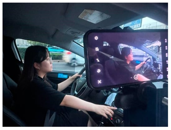 To assess the practical detection performance of the model proposed in this paper, a real-vehicle validation was conducted in May 2023 on Dagunan Road, Jinnan District, Tianjin. This experiment encompassed both daytime and nighttime periods, with a total of 10 drivers participating. During the experiment, the Guojin Junxing vehicle was employed as the experimental vehicle. Data pertaining to distracted driving behaviors from these 10 drivers were collected, and a test dataset containing 660 instances of distracted driving behaviors was constructed during 30 real-vehicle tests. The data-collection process is illustrated in Figure 17, and the test results are presented in Table 4.