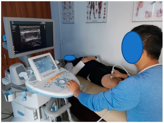 After the participants had relaxed completely, an Aixplorer high-frequency ultrasound imaging system was used to determine the muscle positions of the rectus femoris, hamstring (long head of biceps femoris), tibialis anterior, and gastrocnemius muscles (medial head of gastrocnemius). Figure 4 shows muscle localization using the ultrasound imaging system. The muscle position is shown in Figure 5.
