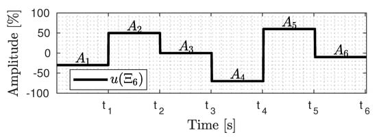 Regardless of the methodology adopted, there is a consensus that the approach must generate signals that provide effective stimuli to the main dynamics of the system []. These signals must exhibit appropriate excitation persistence, covering a wide range of amplitudes and frequencies. Furthermore, it is essential that the signals be feasible for the actuator system and adhere to safety conditions during the identification experiment development [].