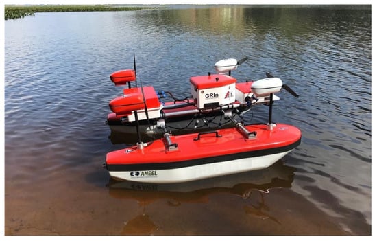 - Regina, B.A.; Honório, L.M.; Pancoti, A.A.; Silva, M.F.; Santos, M.F.; Lopes, V.M.; Neto, A.F.S.; Westin, L.G. Hull and Aerial Holonomic Propulsion System Design for Optimal Underwater Sensor Positioning in Autonomous Surface Vessels. Sensors 2021, 21, 571. [Google Scholar] [CrossRef] [PubMed]