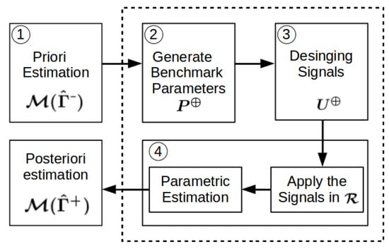 Thus, the application of the method follows a flowchart with four well-defined steps: (1) Prior Estimation, (2) Generate Benchmark Parameters, (3) Signal Design, and (4) Parametric Estimation. These steps are also illustrated in Figure 4.