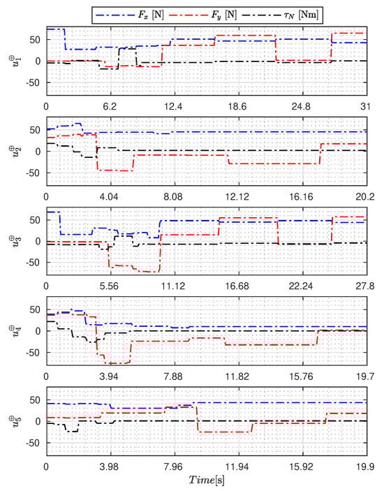 According to marine vehicle nomenclature, it is customary to express state vectors as follows: , representing inertial positions and angular position in the vehicle’s inertial frame; , representing linear velocities and angular velocity in the rigid-body frame [].