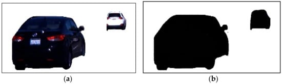 In this subsection, we optimized the vehicle’s extracted outer shape to get more accurate results. We manage both outer layers from change detection and the Gaussian mixture model. Then, we apply the addition process for both input images and store them in the next frame. Figure 4 shows the results of the optimized vehicle silhouette in RGB and binary image format.