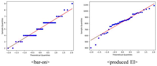 To confirm the representativeness of the population’s EI, the normality of the existing EI evaluation (EQ-i) and the produced EI evaluation were verified. Figure 8 outlines the normal distribution of the two evaluations. The EQ-i showed p = 0.055, and the produced EI evaluation was p = 0.065, indicating normality in both evaluations. A t-test was used to compare HRV (and dynamics) in the EI group.