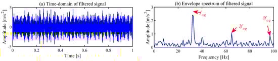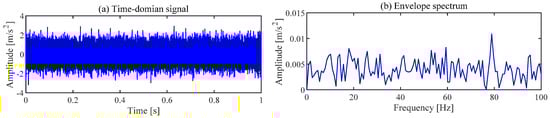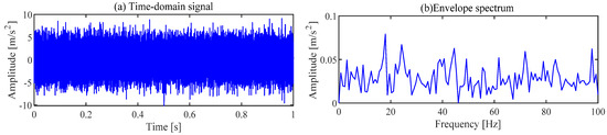 The gearbox vibration signal collected under the above parameters is shown in Figure 5. The periodic shocks caused by the fault cannot be observed in the time domain signal, and the fault characteristic frequency of the relevant gear cannot be observed in the envelope spectrum.