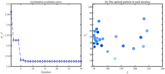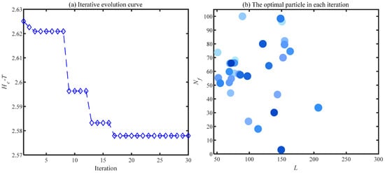 Suppose a population X of L particles in an R-dimensional space; then, X can be denoted as X = (). Where (i = 1, 2,  L) means the coordinate of the ith particle in the R-dimensional space, which is the potential solution to the optimization problem. In addition,  denotes the speed of motion of the ith particle.  represents the individual optimal extreme value found by the ith particle in the process of motion.  is the global optimal extremum of the population. The speed and position of each particle is updated according to Equation (5) during iteration: