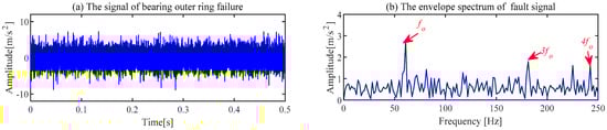 The parameters in the above equation have the same meanings as those in Equation (8). The fault signal of the outer race of the bearing is displayed in Figure 18.