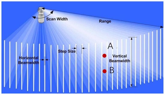 Sonar images encapsulate temporal, angular, and intensity data. It is noteworthy that for data points where different angles correspond to identical time-of-arrival instances, such as points A and B (See Figure 2), the sonar is incapable of distinguishing between them.
