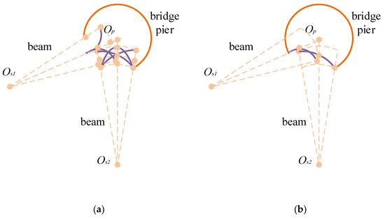 To obtain detailed apparent information from the pier’s surface, the distance l between the sonar measurement point and the pier’s surface is set to 0.5 m. Consequently, we can calculate β as follows: