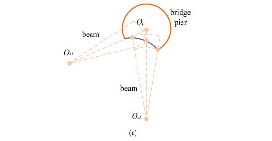 Assuming that the horizontal beam angle’s edge line is tangent to the bridge piers surface, we can calculate l0 as follows: