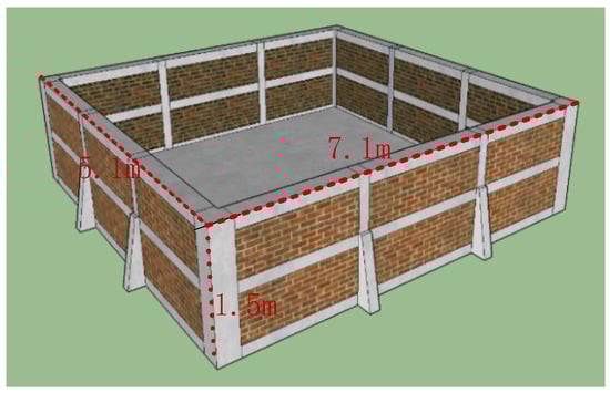 To obtain multi-point data for the underwater bridge pier model, the azimuthal layout of measurement points is calculated based on the requirements [], known bridge pier model information, and the set sonar scanning parameters. Generally, the higher the sonar scanning frequency, the better the quality of the sonar image, but the scanning speed is relatively slower and the scanning range becomes smaller. To obtain clear sonar images, the scanning frequency is set to the maximum of 1.2 MHz, with a scanning speed of one sonar image every 5 s, which is acceptable. Due to the close scanning distance, the beamwidth at this frequency is 28° × 0.6°, which is also an acceptable scanning range. According to the previous model design, the radius of the pier is known to be r = 0.245 m.