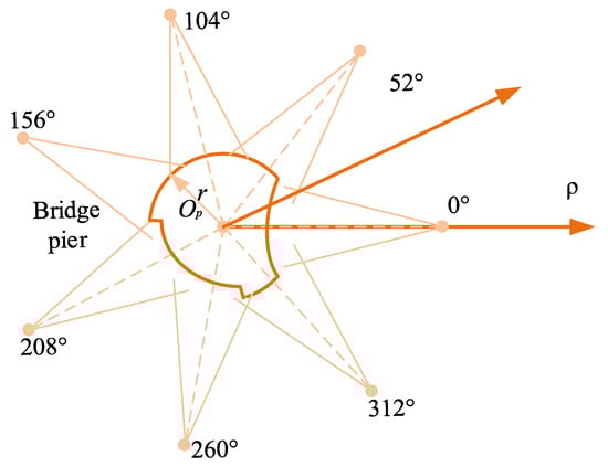 Once α, β, l, and n are determined, the points are evenly distributed along the circular cross-section, with each point at the same distance from the pier’s edge. The angular distance between adjacent measurement points is equal, resulting in the azimuthal layout of measurement points for the bridge pier model, as shown in Figure 25.