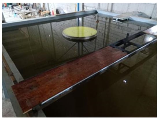 (2) Setting up the sonar system: Afterward, the sonar system was connected, and the sonar was mounted on the angle steel frame. The angle steel frame was securely fixed to the movable platform. Scanning of the bridge pier model was performed using horizontal and lateral scanning methods.