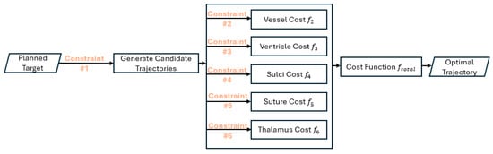 Dergachyova et al. [] used a multi-objective cost function and optimization-based path planner to plan a trajectory for DBS and optimize the target point location and the trajectory to reach from the entry point to the target point.