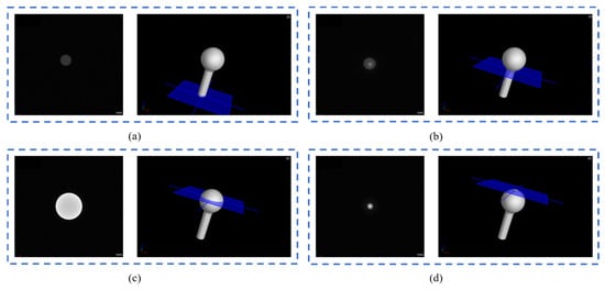 According to Cramer’s rule, the sphere radius R and the three coordinate parameters , , and  are obtained as shown in Equation (7).