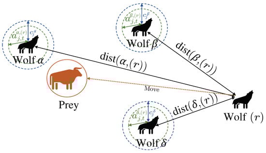 - Step (5): Let denote the distance between the lead wolf * and the rth individual in the pack (or search agent) across the j-th dimension. The lead wolves’ positions are then updated with respect to each realization r in the pack through intermediate variables according to one of the following cases (a) or (b).