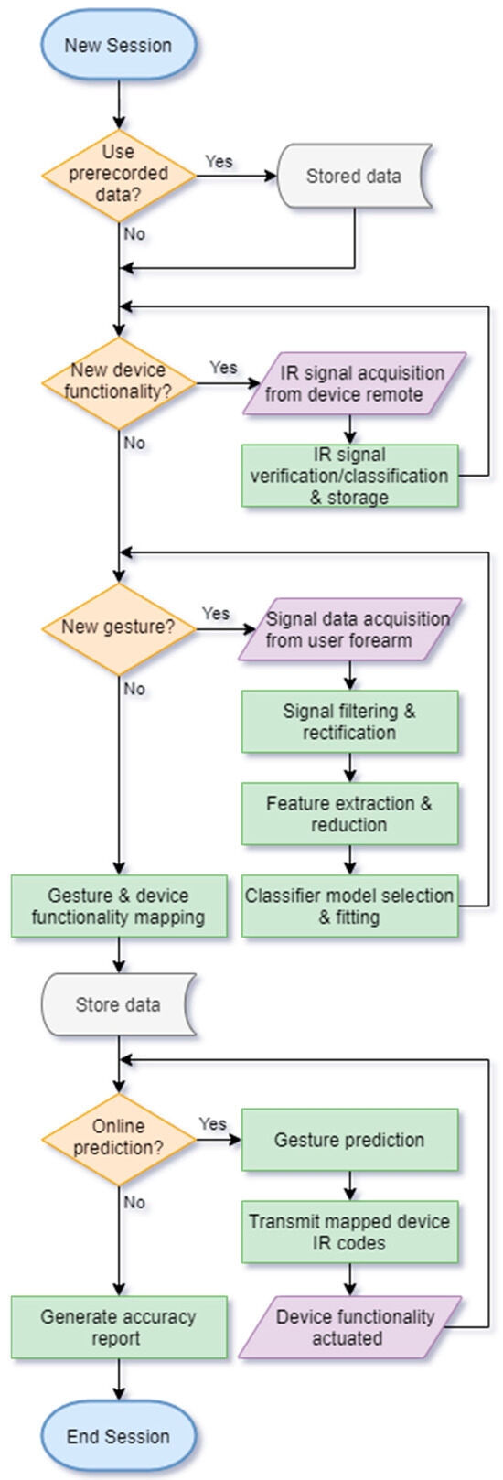 - Device actuation—Final predictions are used to control devices according to gesture mapping setup.