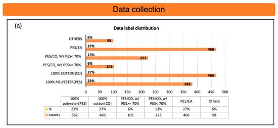 The textile samples are collected from three textile factories in Taiwan. In addition to using the composition labels on the washing tags for the ground-truth labels of the samples, we use FTIR (Thermo brand) spectroscopy for compositional verification to ensure the textile compositions’ correctness. This FTIR instrument is located in the laboratory of the Material and Chemical Research Laboratories (MCLs) at the Industrial Technology Research Institute (ITRI) [41] and is calibrated annually.