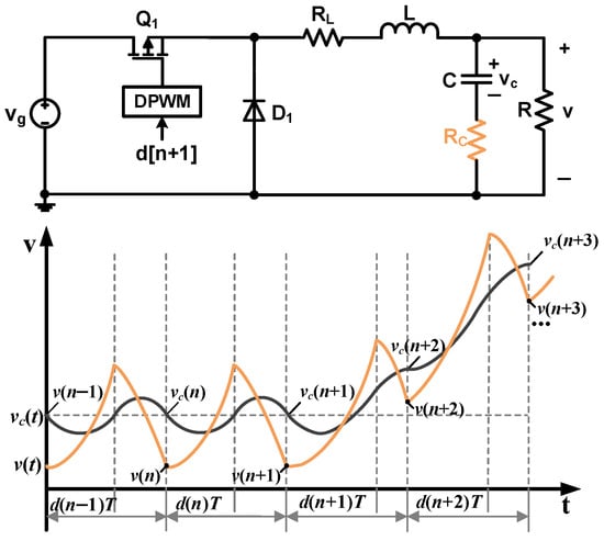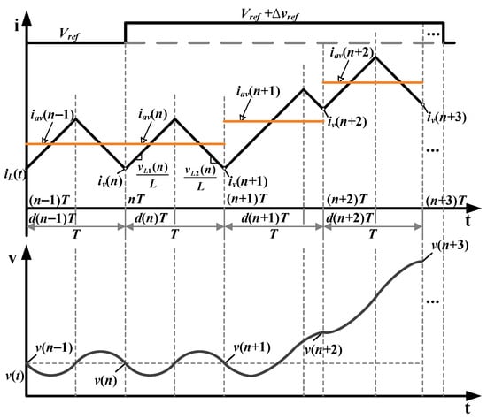 The inductor current and output voltage during the pulse excitation process are illustrated in Figure 2. The reference voltage changes from Vref  to Vref + Δvref at the beginning of the nth switching cycle. With the employed CM control, the duty cycle of the nth switching cycle is calculated in the previous cycle. The duty cycle changes from the (n + 1)th cycle, which introduces a dynamic state.