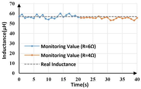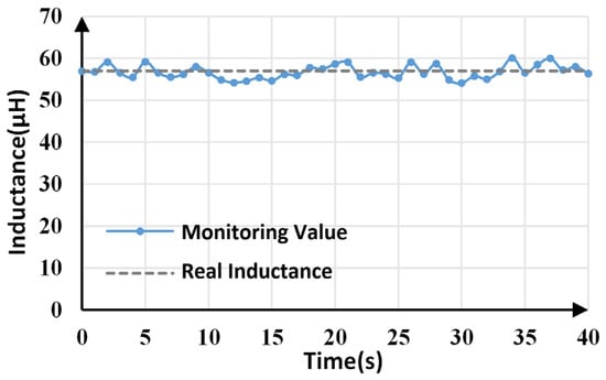The line voltage was set to change from 10 V to 12 V at 20.5 s, and the corresponding inductance monitoring results are shown in Figure 15. The average, maximum, and minimum values of inductance calculated under different line voltages are provided in Table 5. Although the line voltage changes, the average value is slightly smaller than the actual value, and the maximum error is less than 5%.