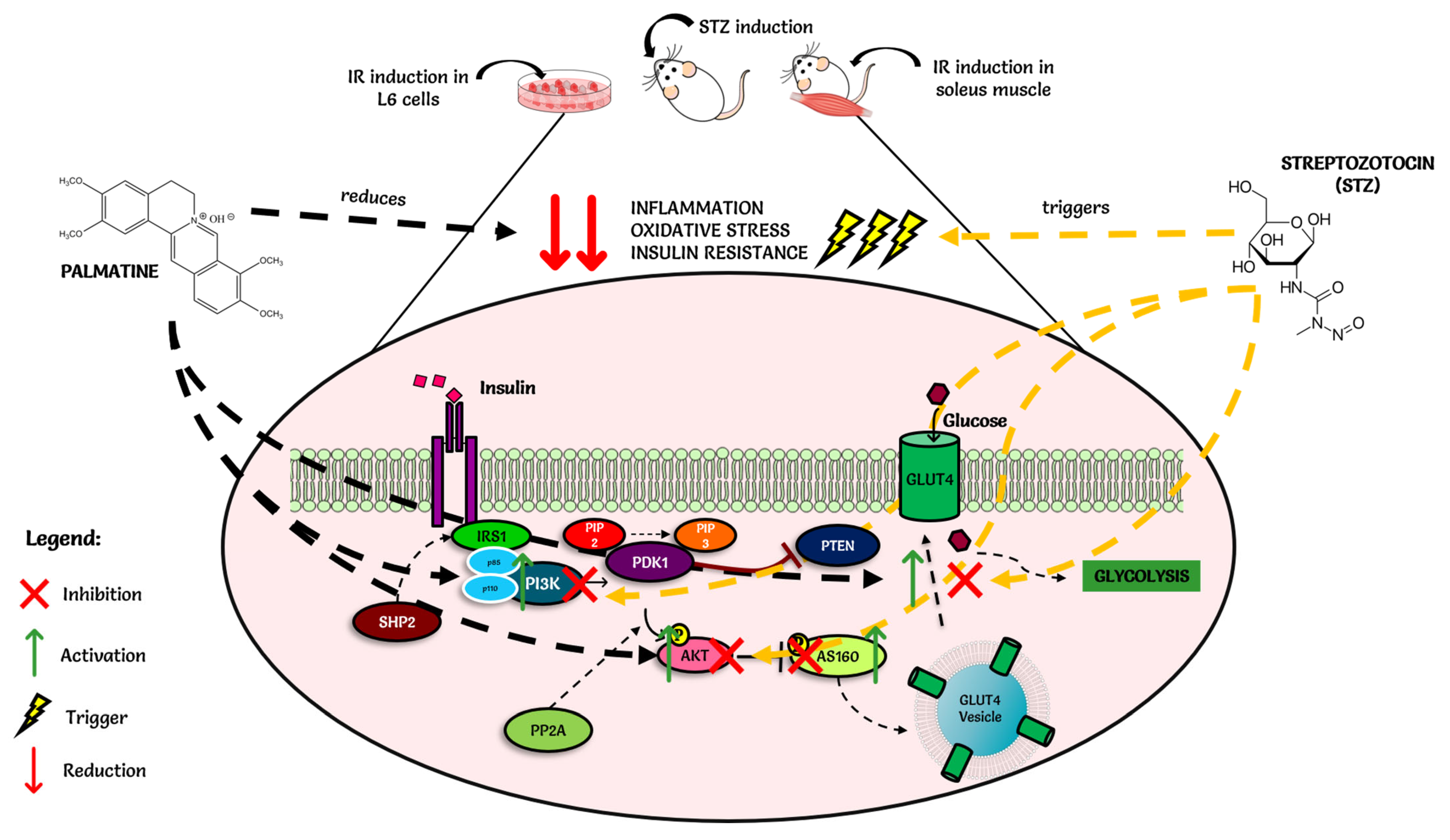 2.1. Effect of Palmatine on the Expression of IRS1