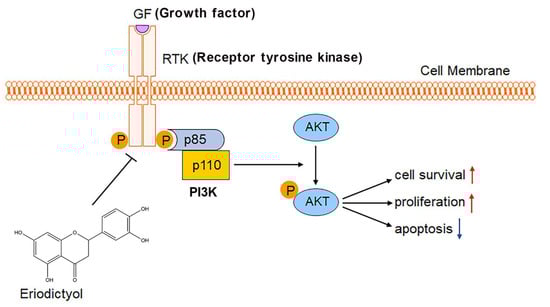 - Li, W.; Du, Q.; Li, X.; Zheng, X.; Lv, F.; Xi, X.; Huang, G.; Yang, J.; Liu, S. Eriodictyol Inhibits Proliferation, Metastasis and Induces Apoptosis of Glioma Cells via PI3K/Akt/NF-κB Signaling Pathway. Front. Pharmacol. 2020, 11, 114. [Google Scholar] [CrossRef]