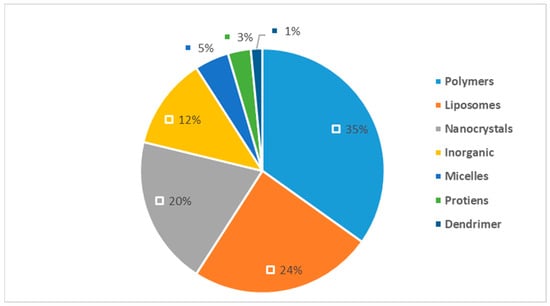 Distribution of nanoparticle types in nanomedicine [,,,,,,,].