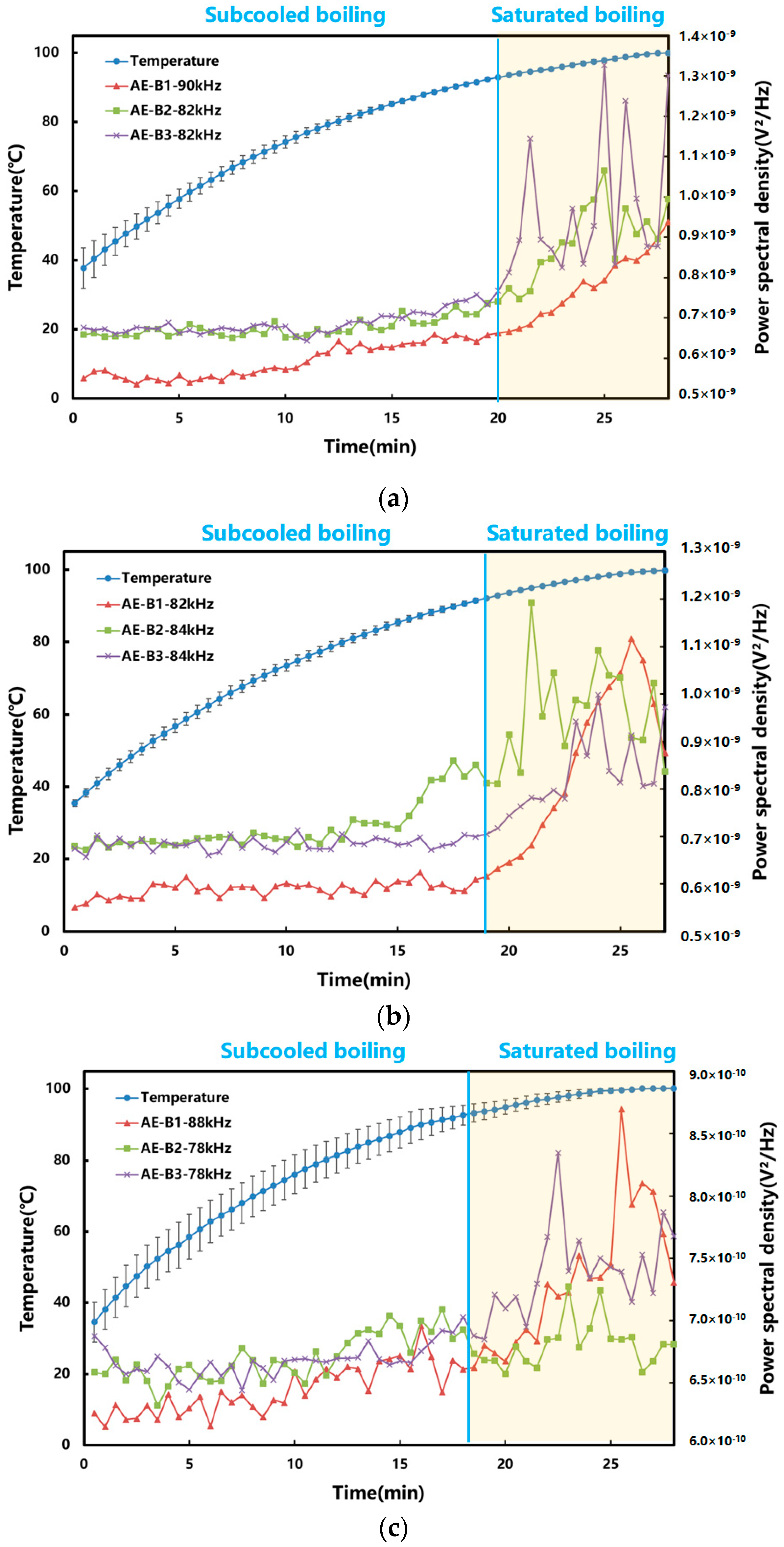 - Alhashan, T.; Addali, A.; Amaral Teixeira, J.; Elhashan, S. Identifying Bubble Occurrence during Pool Boiling Employing Acoustic Emission Technique. Appl. Acoust. 2018, 132, 191–201. [Google Scholar] [CrossRef]