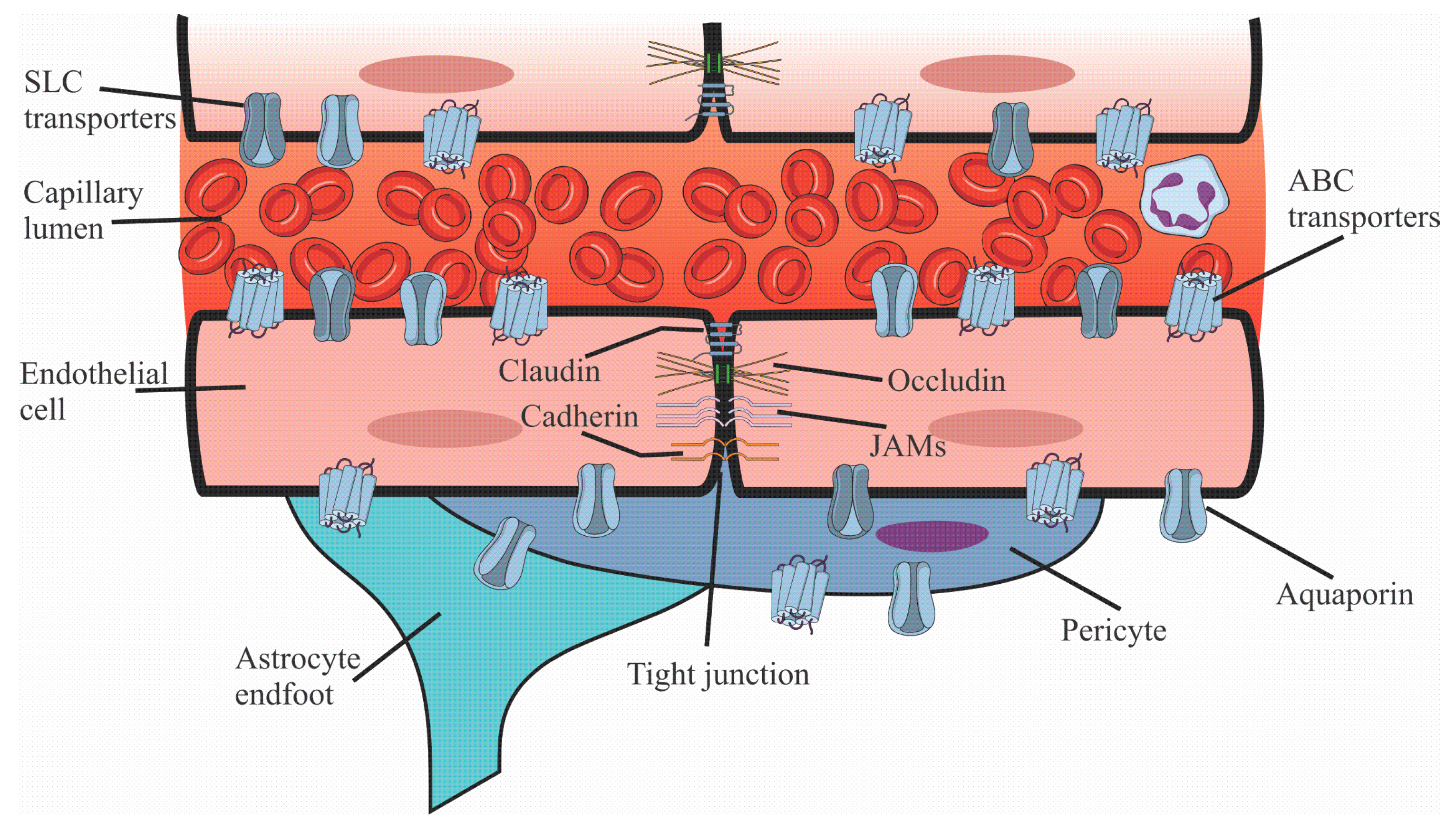 - Kadry, H.; Noorani, B.; Cucullo, L. A Blood–Brain Barrier Overview on Structure, Function, Impairment, and Biomarkers of Integrity. Fluids Barriers CNS 2020, 17, 69. [Google Scholar] [CrossRef] [PubMed]
