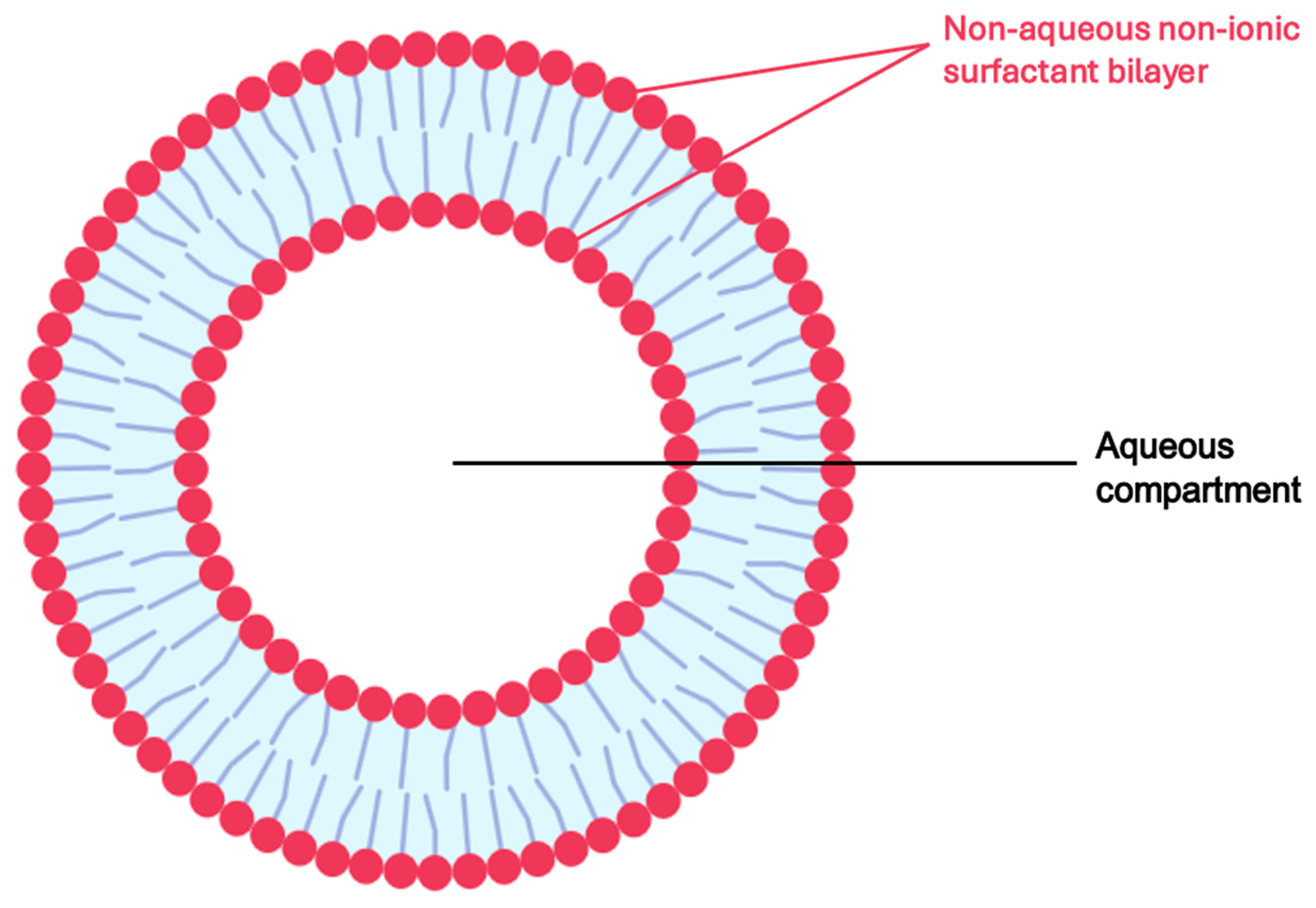 | Niosomes | Tested | Non-ionic surfactants (Span 40), cholesterol | High encapsulation efficiency (72.3%), sustained release (82.7%), reduced irritation (with aloe vera) | Stable, biocompatible | Less studied than liposomes | [102] |
