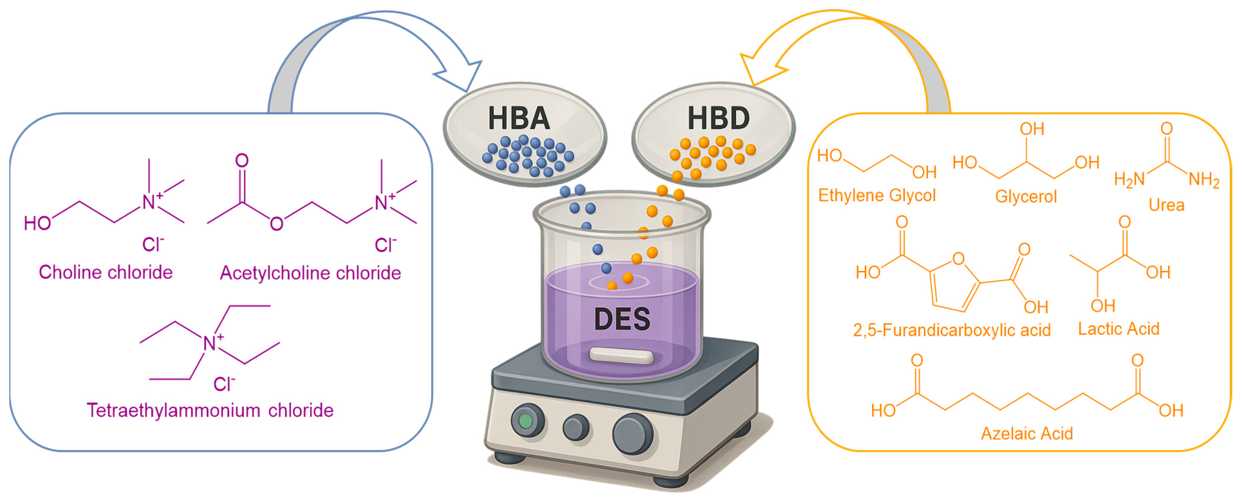 - Type III: Quaternary ammonium salt (e.g., choline chloride ChCl) + HBD (e.g., glycerol);