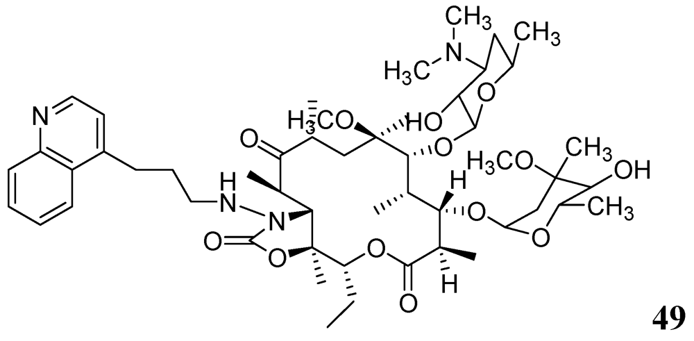 - Falzari, K.; Zhu, Z.; Pan, D.; Liu, H.; Hongmanee, P.; Franzblau, S.G. In vitro and in vivo activities of macrolide derivatives against Mycobacterium tuberculosis. Antimicrob. Agents Chemother. 2005, 49, 1447–1454. [Google Scholar] [CrossRef]