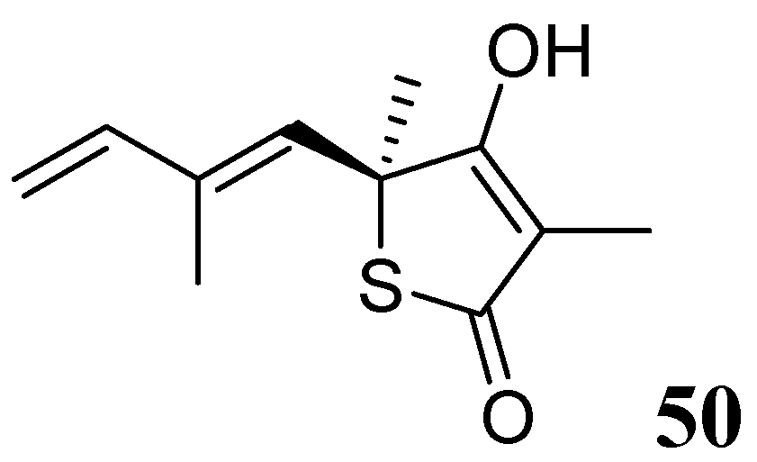 - Kim, P.; Zhang, Y.M.; Shenoy, G.; Nguyen, Q.A.; Boshoff, H.I.; Manjunatha, U.H.; Goodwin, M.B.; Lonsdale, J.; Price, A.C.; Miller, D.J.; et al. Structure-activity relationships at the 5-position of thiolactomycin: An intact (5R)-isoprene unit is required for activity against the condensing enzymes from Mycobacterium tuberculosis and Escherichia coli. J. Med. Chem. 2006, 49, 159–171. [Google Scholar]