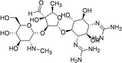 | Streptomycin (1944) MIC 2–8 μg/mL | ![]() | 15–40 mg/kg (1 g) IM | Renal, ophthalmic and respiratory toxicity | Same as kanamycin |