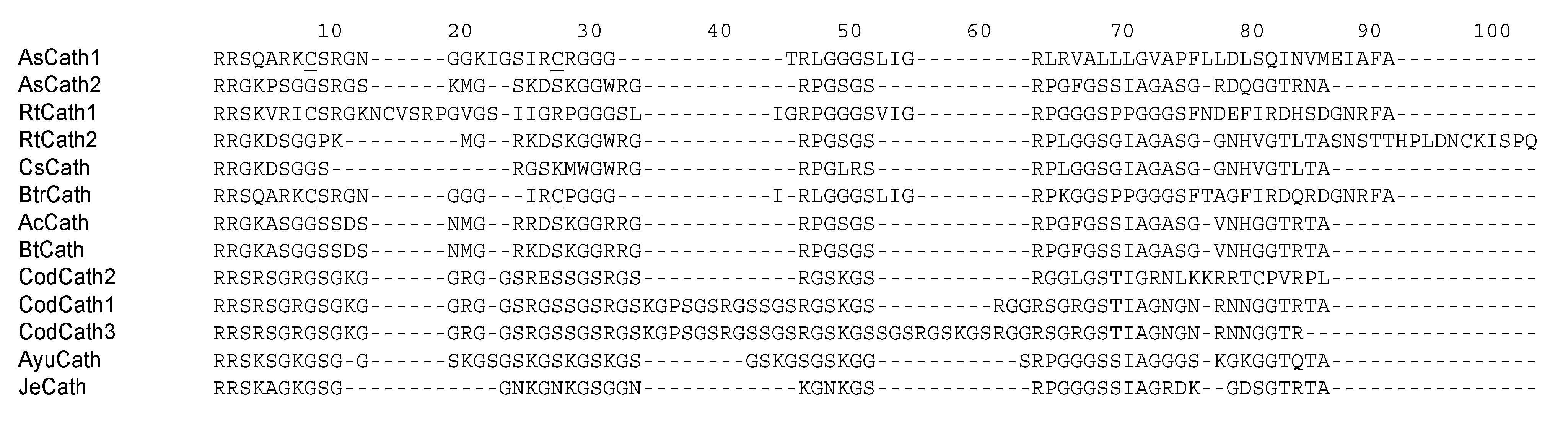 - Broekman, D.C.; Frei, D.M.; Gylfason, G.A.; Steinarsson, A.; Jornvall, H.; Agerberth, B.; Gudmundsson, G.H.; Maier, V.H. Cod cathelicidin: Isolation of the mature peptide, cleavage site characterisation and developmental expression. Dev. Comp. Immunol. 2011, 35, 296–303. [Google Scholar] [CrossRef]
