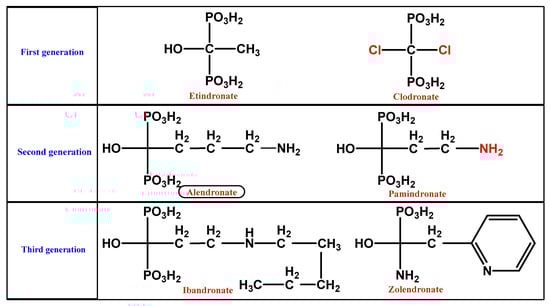 - Ebetino, F.H.; Hogan, A.M.; Sun, S.; Tsoumpra, M.K.; Duan, X.; Triffitt, J.T.; Kwaasi, A.A.; Dunford, J.E.; Barnett, B.L.; Oppermann, U.; et al. The relationship between the chemistry and biological activity of the bisphosphonates. Bone 2011, 49, 20–33. [Google Scholar] [CrossRef]