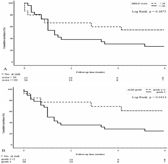 - Chen, B.; Lin, S. Albumin-bilirubin (ALBI) score at admission predicts possible outcomes in patients with acute-on-chronic liver failure. Medicine 2017, 96, e7142. [Google Scholar] [CrossRef]