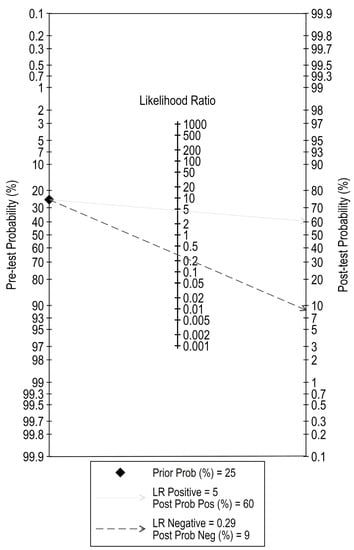 Lastly, Fagan’s nomogram was used to assess the clinical relevance and patient utility of the diagnostic test and to evaluate for post-test probabilities [].
