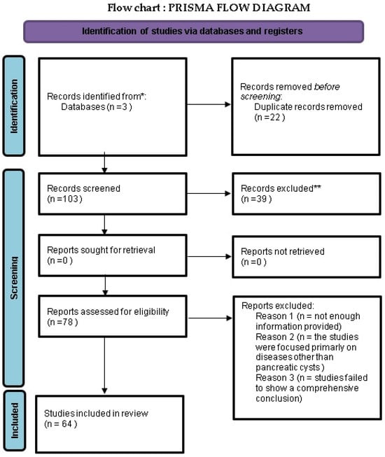 As a result of our screening and evaluation process, we identified 64 articles that met our high standards for inclusion in this comprehensive review. These articles are central to our discussion and in-depth analysis of the current advancements in pancreatic imaging techniques. The selection and exclusion of articles were methodically documented in a PRISMA flow diagram (Figure 1), as shown below in the flow chart with the same name (Flow Chart: Prisma Flow Diagram). This diagram is not just a visual representation but also a testament to the thoroughness and transparency of our research methodology.