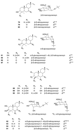 - Berrue, F.; McCulloch, M.W.; Kerr, R.G. Marine diterpene glycosides. Bioorg. Med. Chem. 2011, 19, 6702–6719. [Google Scholar] [CrossRef] [PubMed]
